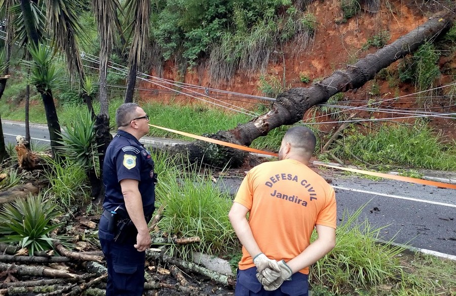 Uma árvore da espécie Araucária, caiu no início da tarde desta sexta-feira (19), atingindo um caminhão e um motociclista, no Corredor de Transporte Metropolitano Itapevi – São Paulo (Butantã), em Jandira, na Grande São Paulo.